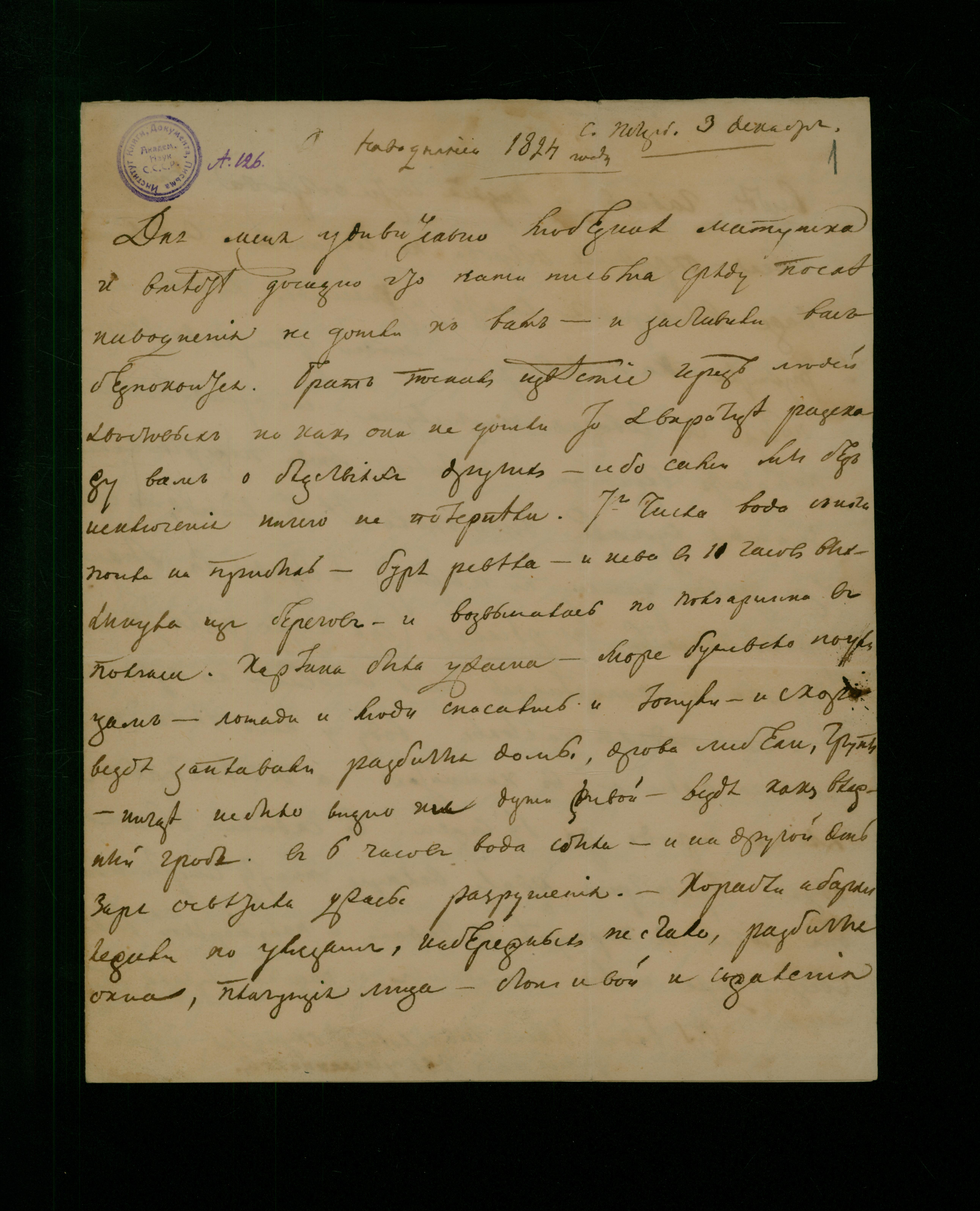 Письмо А. А. Бестужева матери П. М. Бестужевой. 3 декабря 1824 г. Архив СПбИИ РАН. Кол. 238. Оп. 2. Карт. 270. Ед. хр. 42