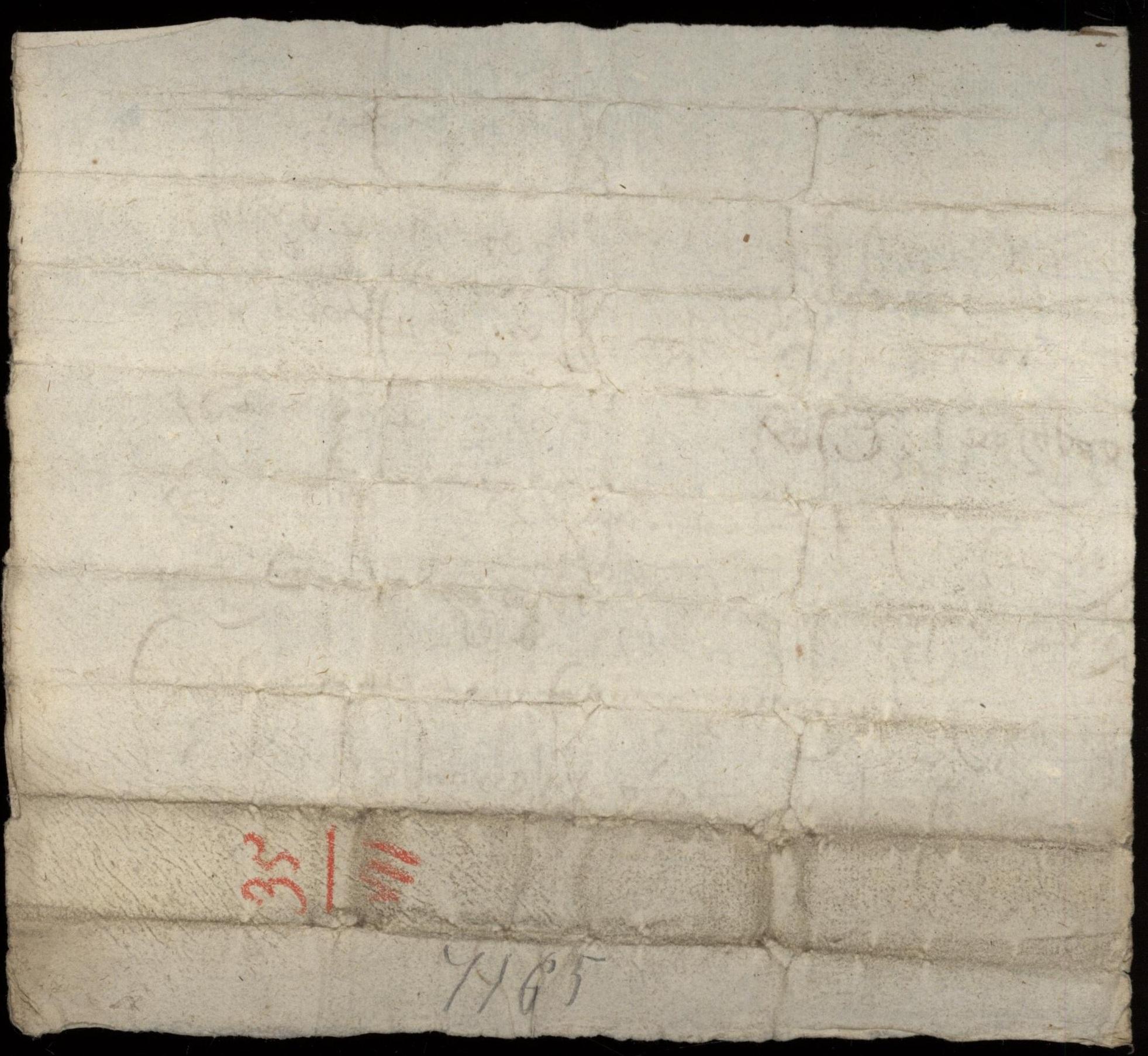 Текст выписи из таможенной книги написан скорописью на л. 1, состоит из 9 строк. На лицевой стороне после окончания текста рукоприкладная запись. На л. 1 об. пометки почерком XIX в. графитовым карандашом «7165», почерком XX в. красным карандашом «35 / VII».