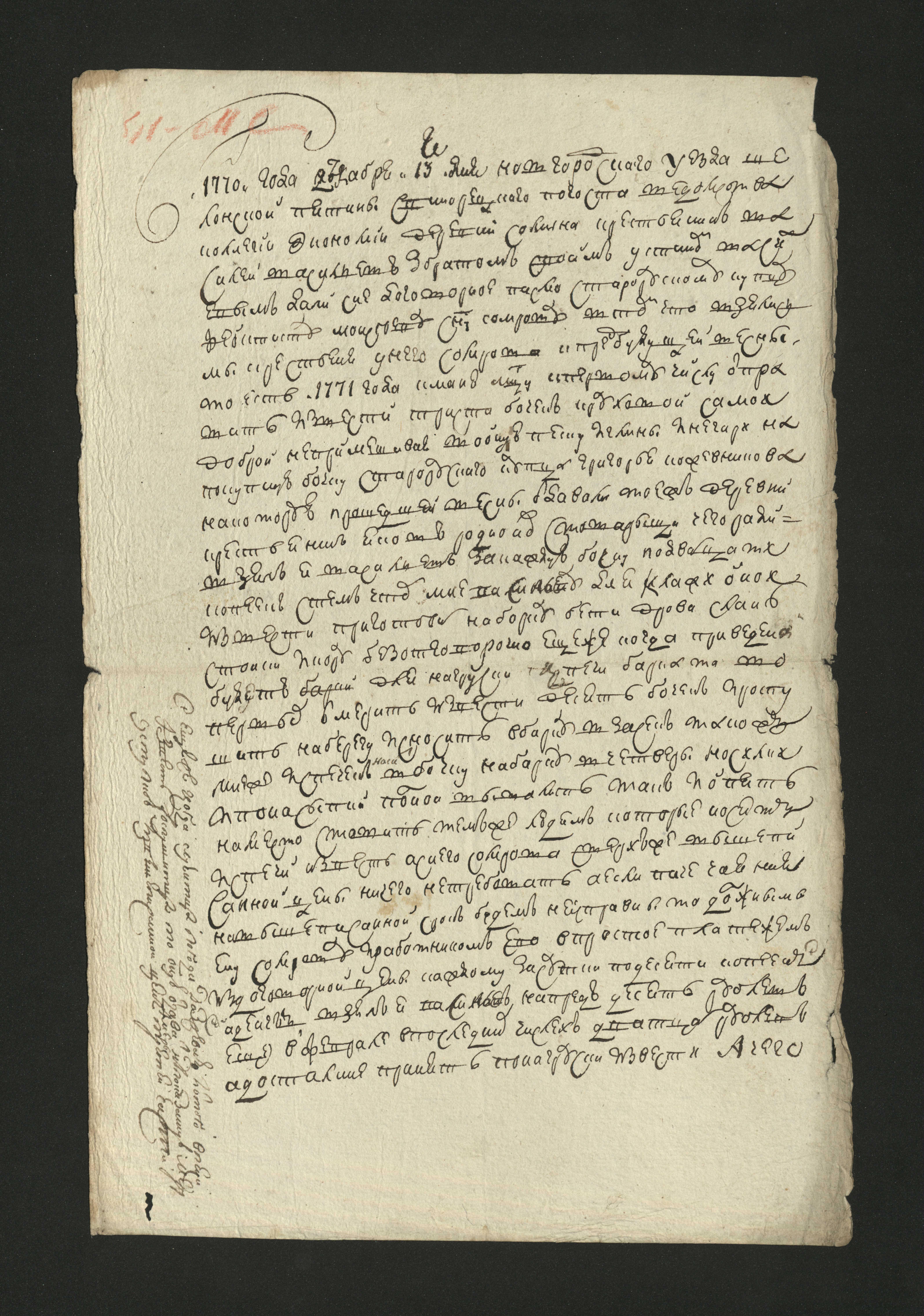 Договорное письмо двух крестьян на доставку ими трехсот бочек извести купцу Ф. Сомрову; 1770 г.; Архив СПбИИ РАН. РС. Колл. 154. Оп. 1. Д. 520.