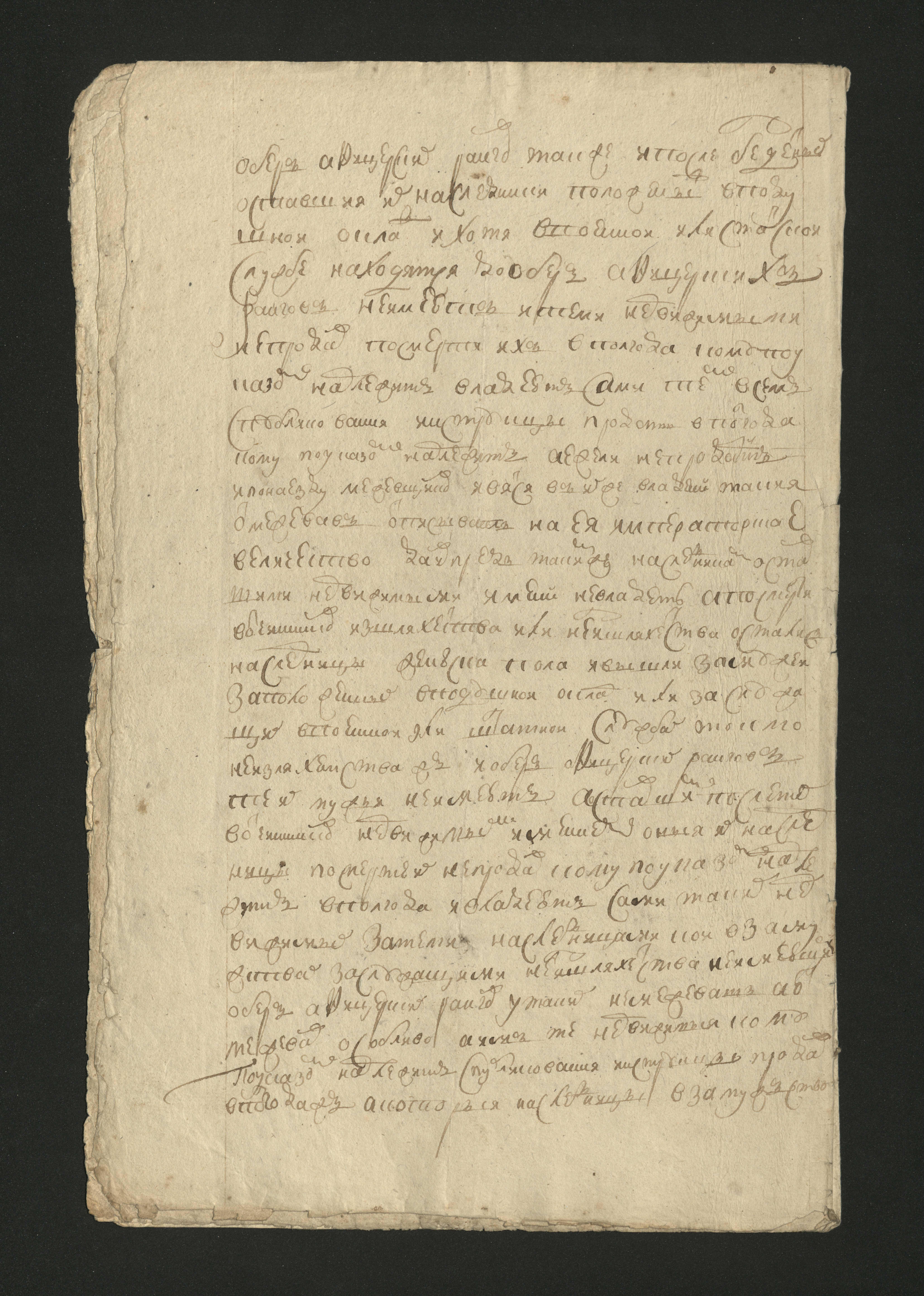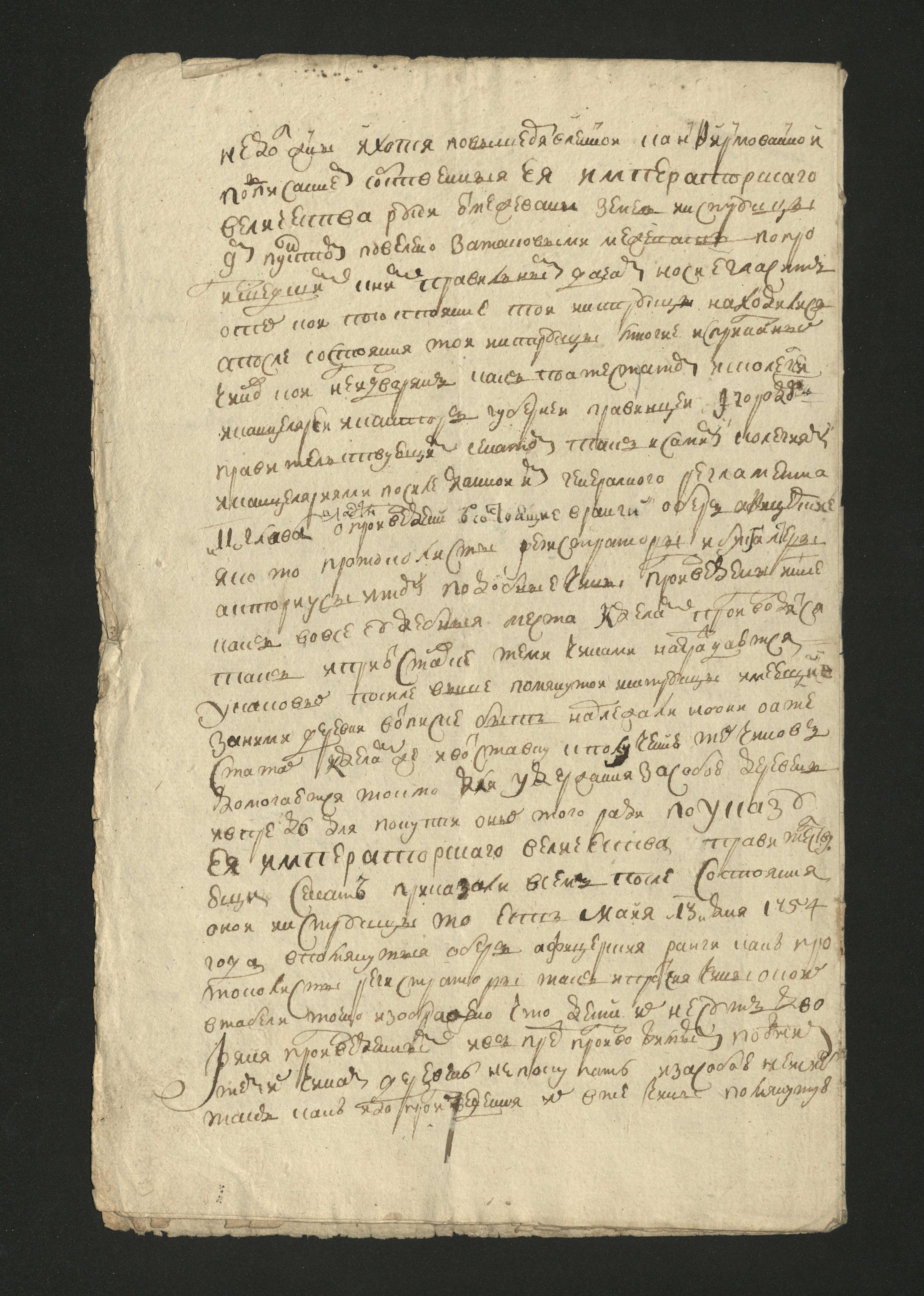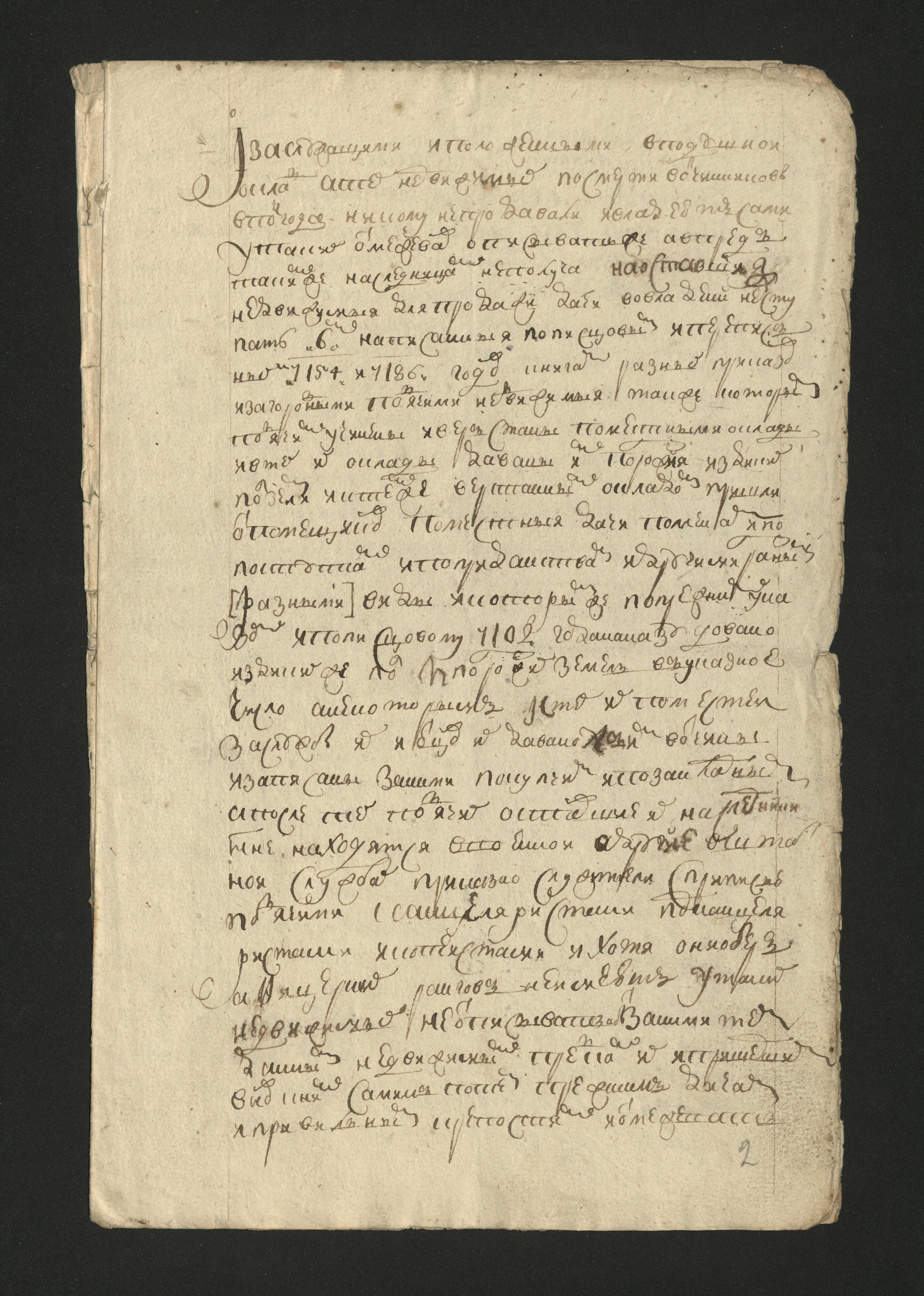Документ формата In folio. Написан стилем русского канцелярского письма XVIII в.