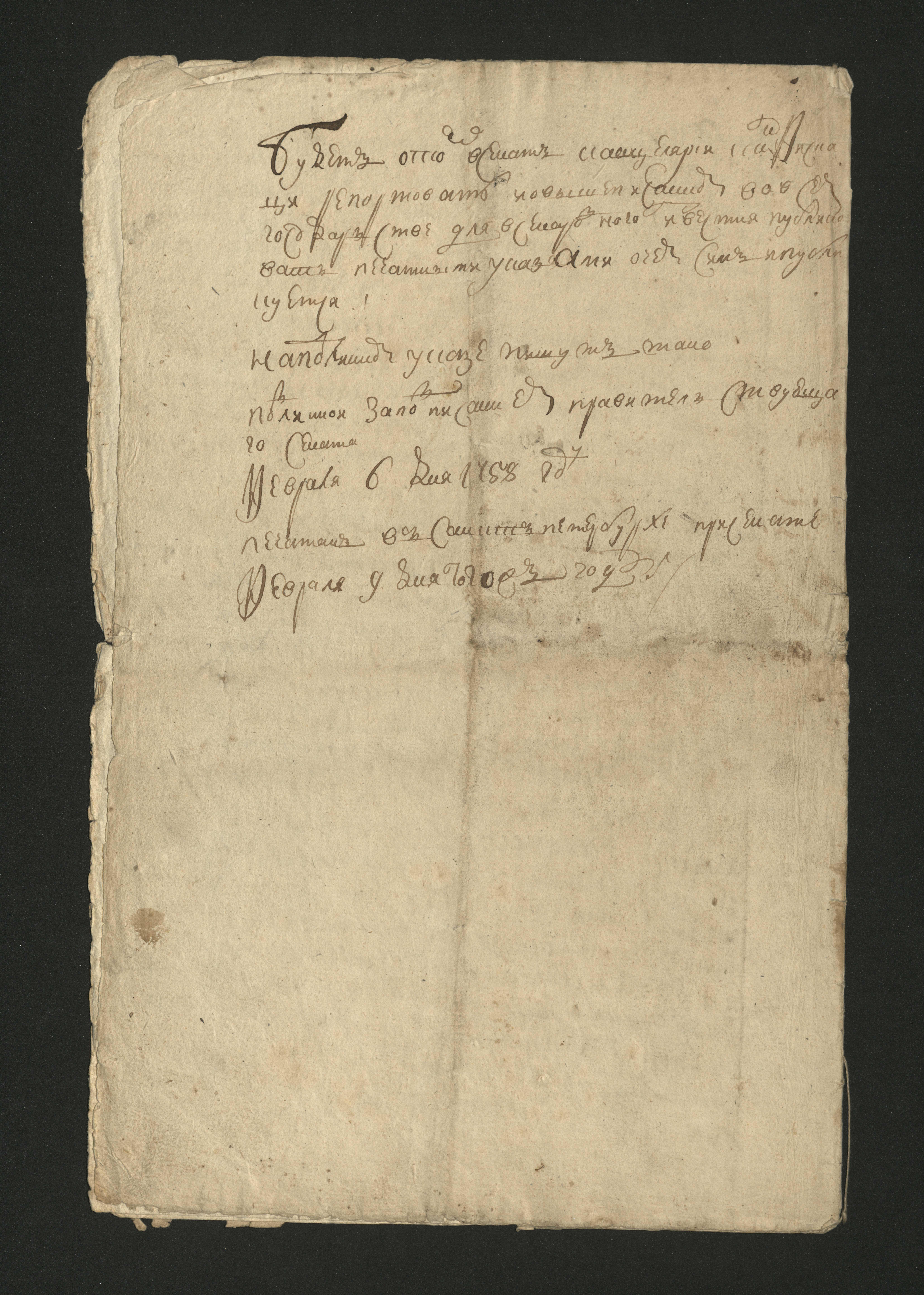 …публиковать печатными указами, о чем сим и публикуется. На подлинном указе пишут тако. Подлинной за подписанием Правительствующего Сената. Февраля 6 дня 1758 году. Печатан в Санкт-Петербурхе при Сенате февраля 9 дня того же году.